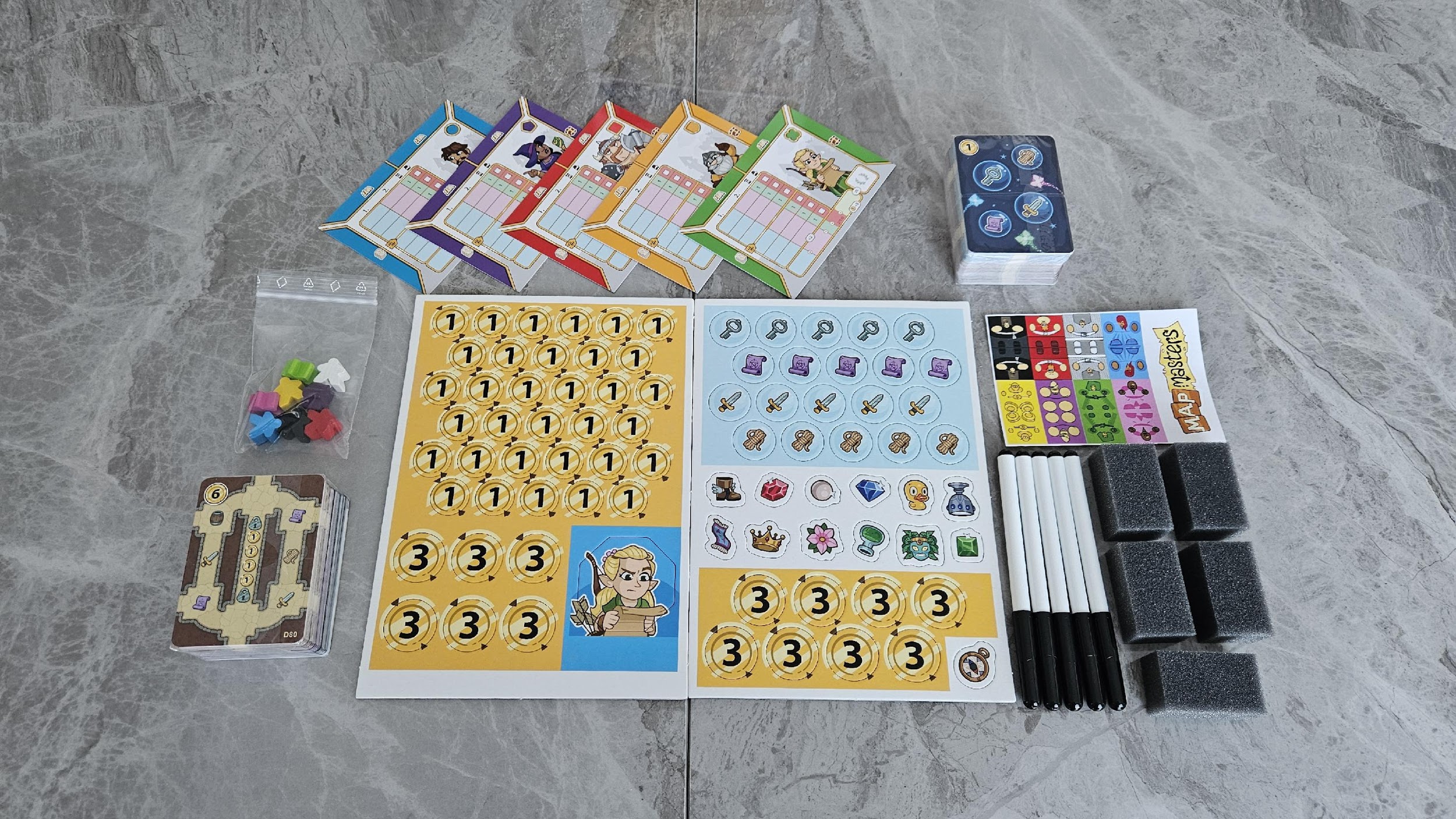Des cartes, des jetons et des feutres