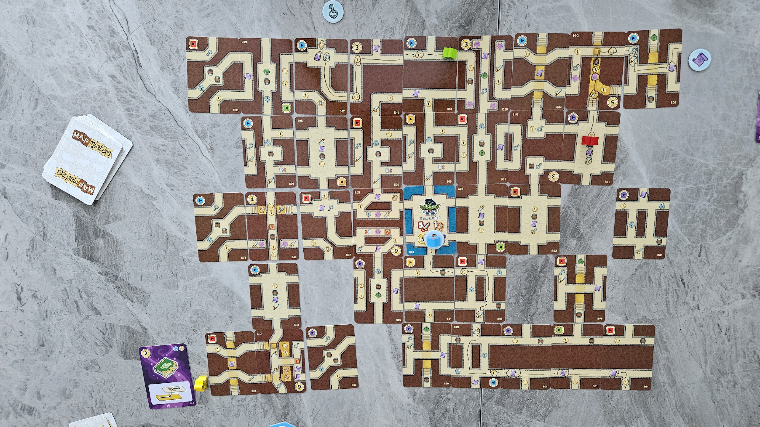 Il y a donc beaucoup de choses à considérer dans ce mode de jeu. Ce que j’ai surtout aimé, c’est que le mode ne nous fait pas vraiment nous affronter. Chaque joueur est maître de son propre plateau et c’est la façon dont il construit son donjon qui lui permettra de remporter plus de points. Bien entendu, le hasard aussi a son mot à dire, mais c’est un jeu parfait pour ceux qui n’aiment pas la confrontation directe. Avoir ajouté de la confrontation aurait dilué l’aspect puzzle du jeu. J’aurai tendance à dire que Map Masters est un bon jeu de fin de soirée. Cela permet à la poussière de retomber si vous y avez été avec des jeux plus compétitifs avant celui-ci.