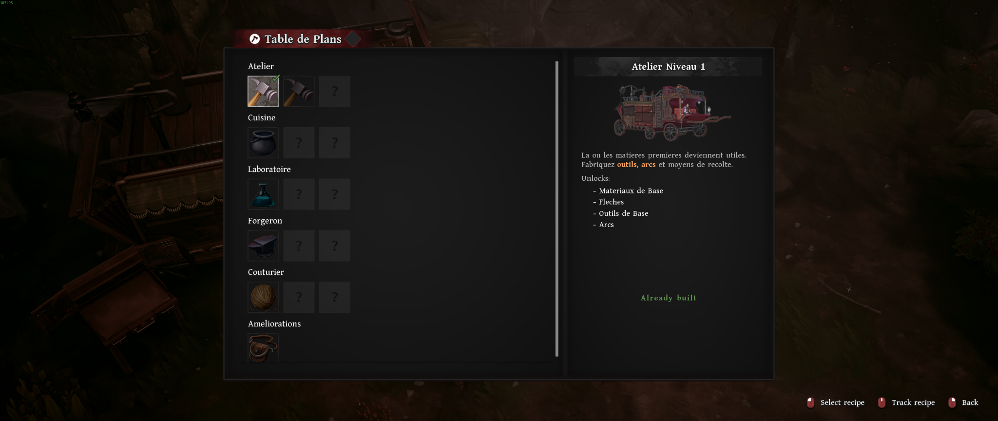 Parmi les installations essentielles, on retrouve le traiteur qui permet de déconstruire les objets afin d’en extraire les matériaux de base facilitant ainsi la gestion des ressources. La cuisine, quant à elle, apporte une dimension plus dynamique en permettant de combiner différents ingrédients pour obtenir des repas plus efficaces, offrant une meilleure satiété ainsi que des effets supplémentaires selon les recettes utilisées. Le coffre de stockage, accessible dès le début, offre un espace illimité pour entreposer les ressources accumulées, allégeant ainsi les contraintes de l’inventaire lors des expéditions. L’atelier sert à fabriquer les outils indispensables, comme les haches, arcs ou flèches, tandis que le tisserand, une fois débloqué, permet d’améliorer la capacité du sac à dos et de confectionner des armures plus performantes. Celui-ci s’accompagne d’une table de couture, qui permet d’intégrer concrètement ces améliorations à l’équipement.