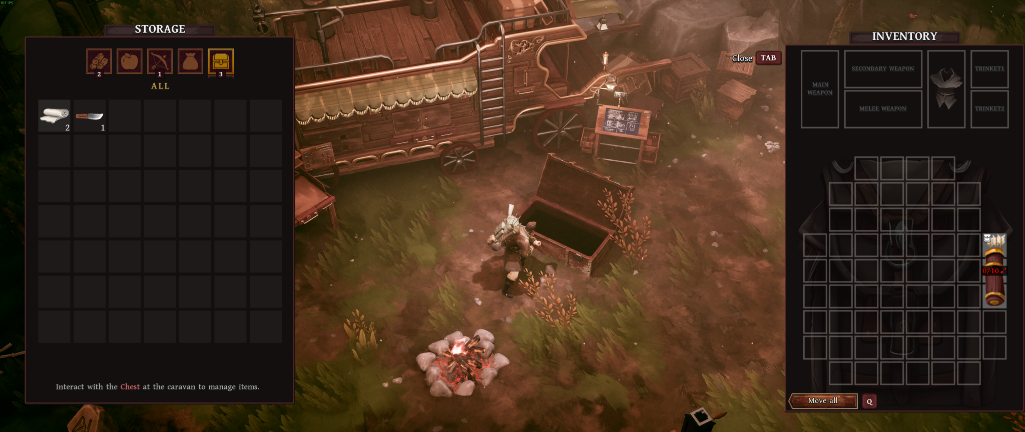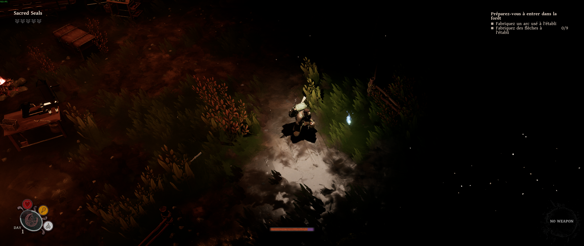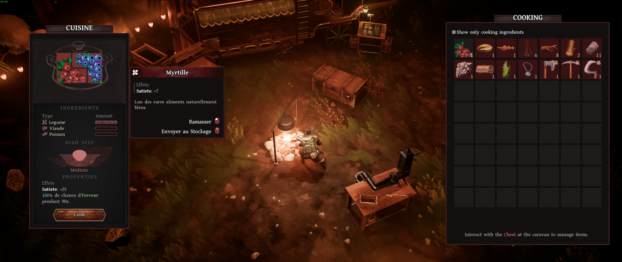 Plus tard, la forge vient enrichir encore davantage les possibilités en offrant l’amélioration de certains matériaux, des armes de mêlée et des pièges. Elle est équipée d’un four qui peut être utilisé pour certaines transformations plus avancées. Enfin, le laboratoire complète cet ensemble en donnant accès à la fabrication de potions, ajoutant une couche supplémentaire de préparation avant les expéditions. Dans son ensemble, la caravane constitue un système cohérent et structurant, centralisant toutes les mécaniques de progression et renforçant le sentiment d’évolution, même si cette dernière peut parfois sembler limitée dans ses effets concrets.