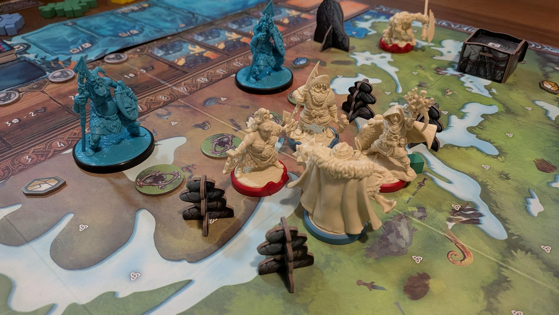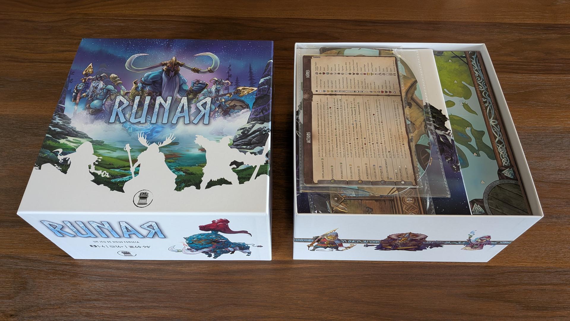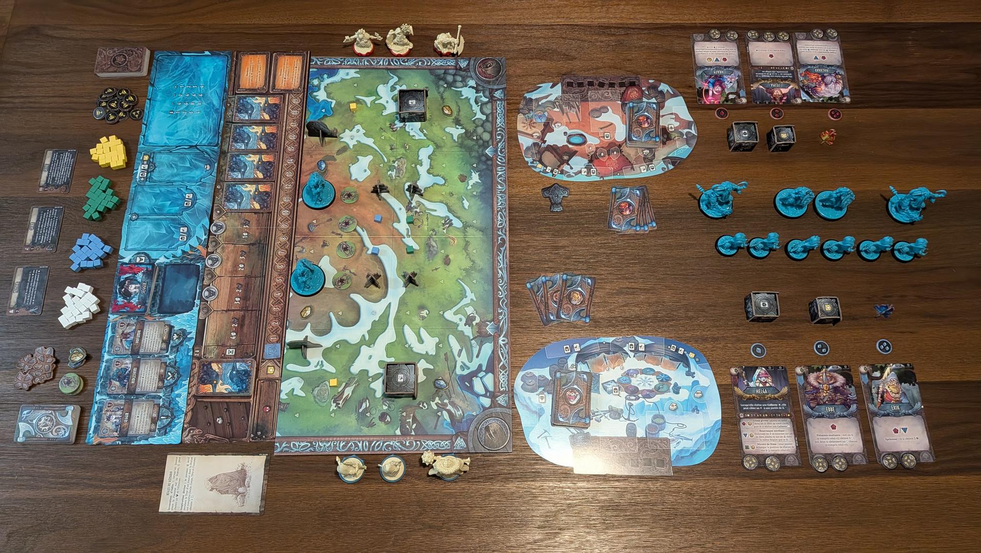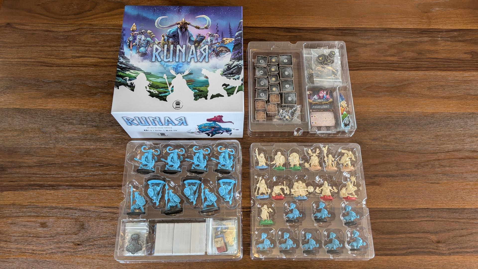 La mise en place de Runar prend un certain temps. Entre les figurines, les nombreuses cartes, les différents jetons et la mise en place des objets sur le plateau selon le choix du scénario, vous en aurez pour un bon moment avant que tout soit fin prêt. Si vous souhaitez économiser un peu de temps, vous pouvez affecter à chaque joueur les personnages prédéterminés pour chaque clan plutôt que de les drafter.