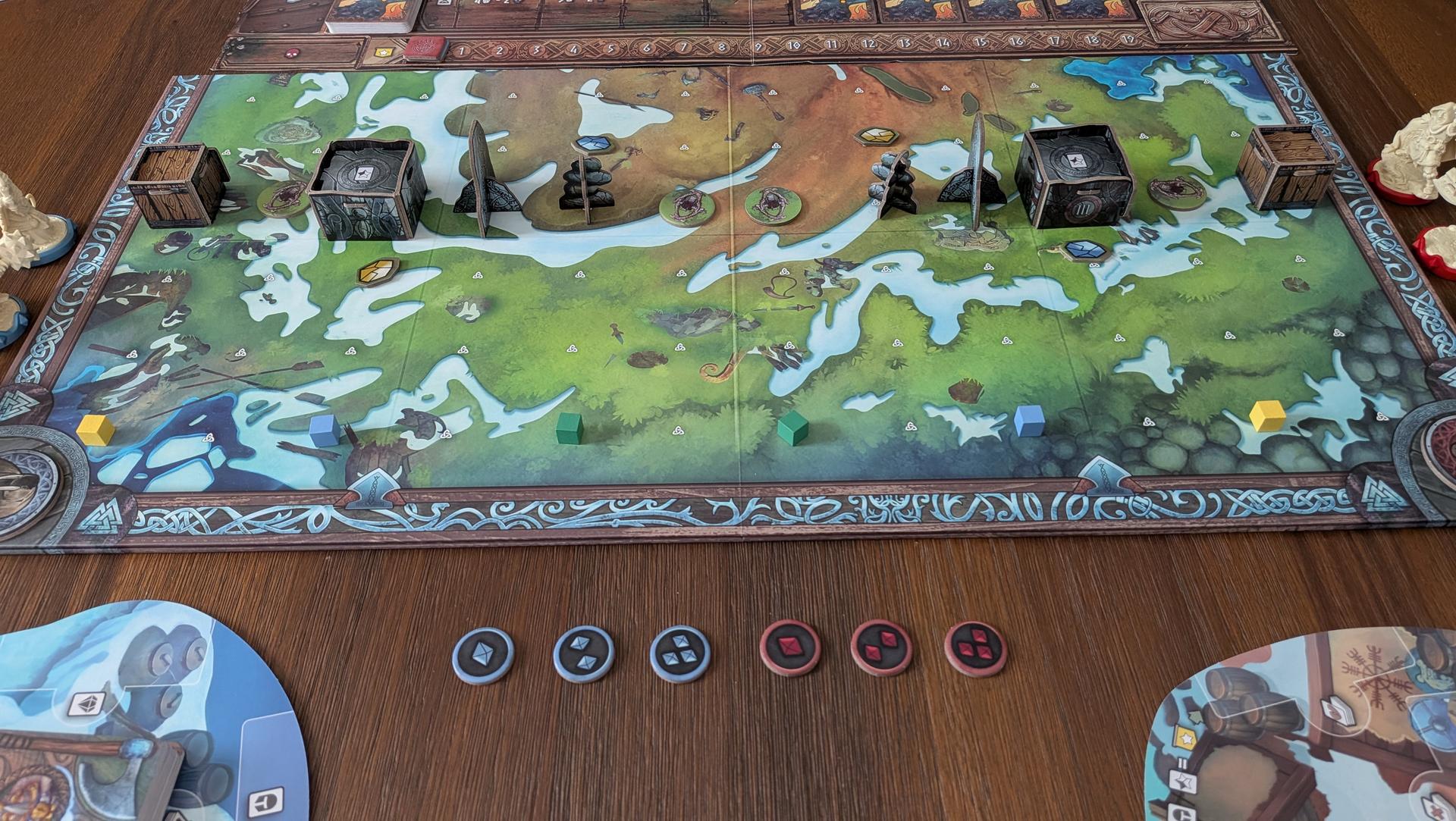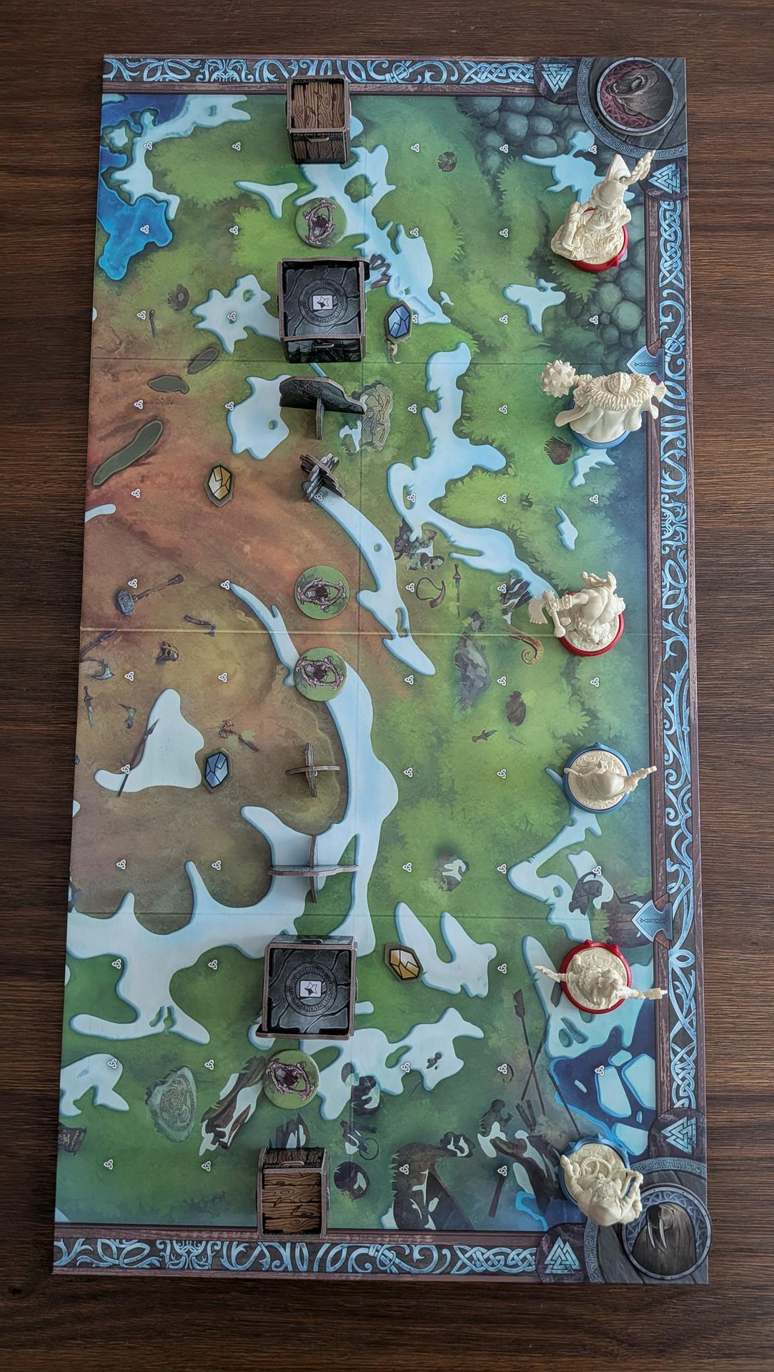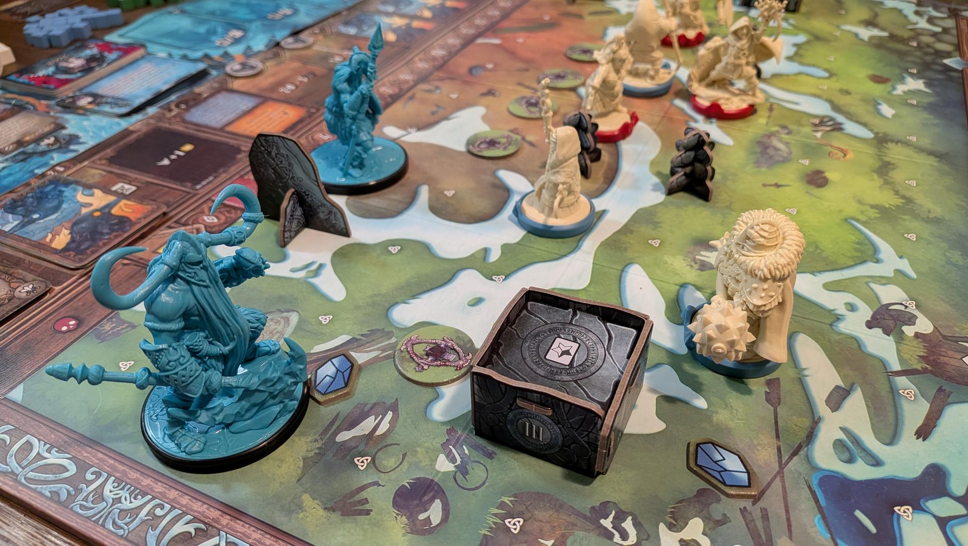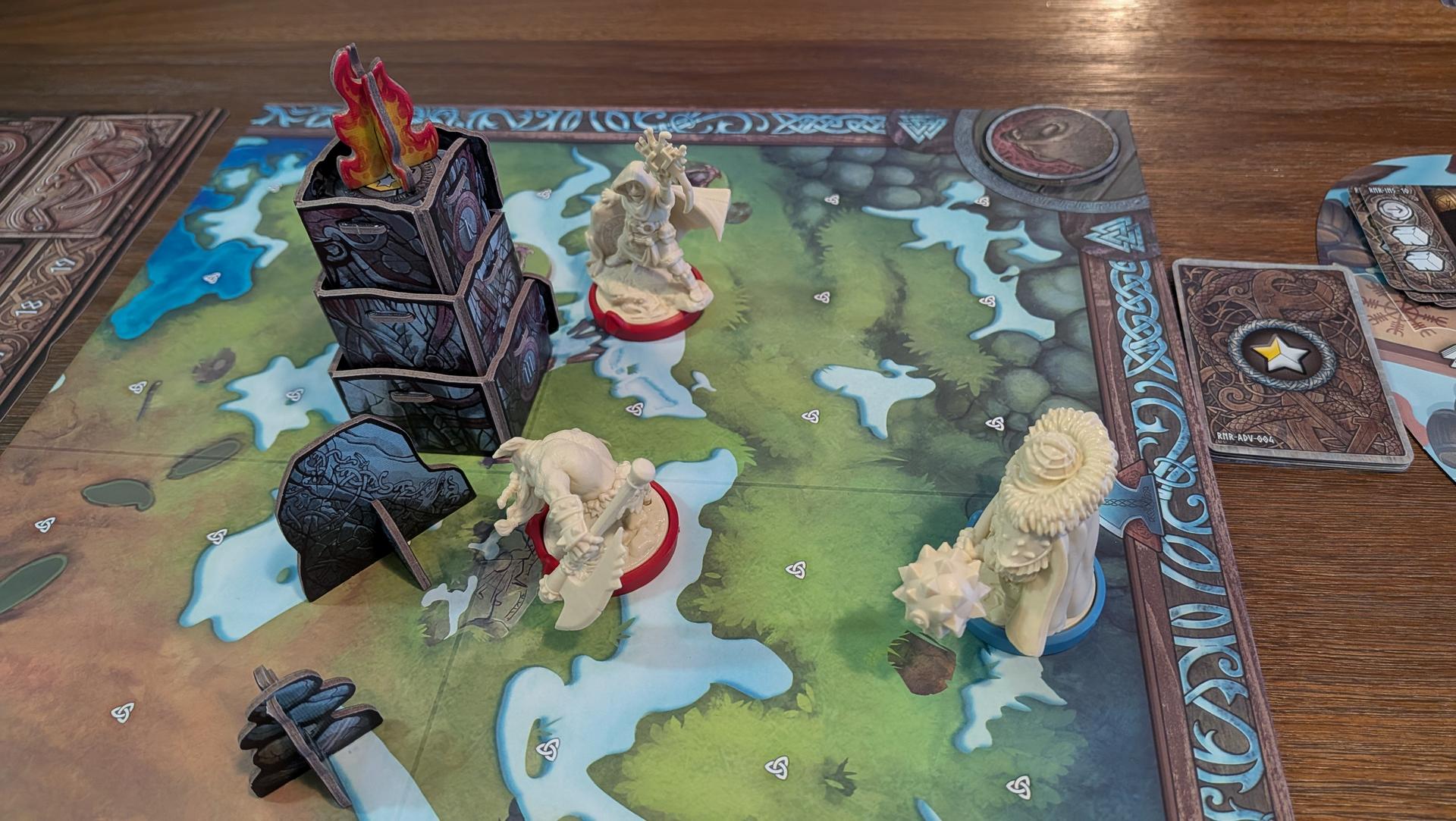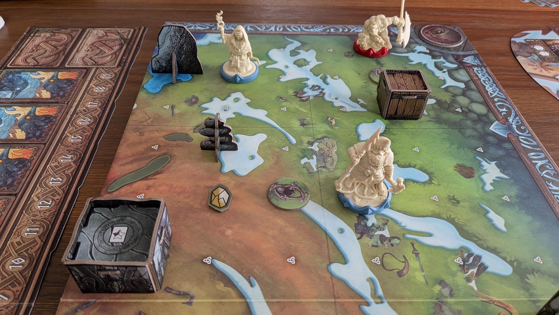 La mise en place de Runar prend un certain temps. Entre les figurines, les nombreuses cartes, les différents jetons et la mise en place des objets sur le plateau selon le choix du scénario, vous en aurez pour un bon moment avant que tout soit fin prêt. Si vous souhaitez économiser un peu de temps, vous pouvez affecter à chaque joueur les personnages prédéterminés pour chaque clan plutôt que de les drafter.