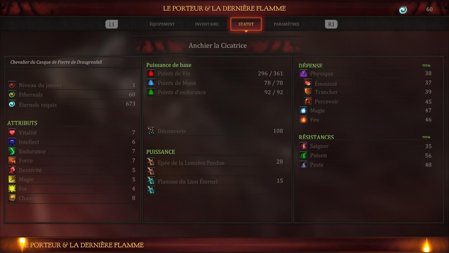 The Bearer and the Last Flame est un jeu qui frustre plus qu’il ne déçoit. Parce qu’on y voit constamment ce qu’il voulait être. On aperçoit les fondations d’un vrai petit souls-like dark fantasy respectable. On sent la passion, les idées, l’envie de bâtir un monde hostile et marquant. On comprend qu’il y a ici une ambition sincère, et même une forme de courage dans le fait d’avoir tenté un projet de cette nature. Mais à l’écran, manette en main, ce potentiel ne se transforme pas suffisamment en plaisir de jeu. Le combat manque trop de précision pour soutenir l’ensemble. L’exploration devient trop souvent confuse au lieu d’être stimulante. L’univers, malgré son atmosphère, manque d’identité forte. Et surtout, l’impression générale reste celle d’un jeu sorti avant d’avoir atteint le niveau de finition dont il avait absolument besoin. Cela étant dit, je lui donne la note de 5.5 sur 10.