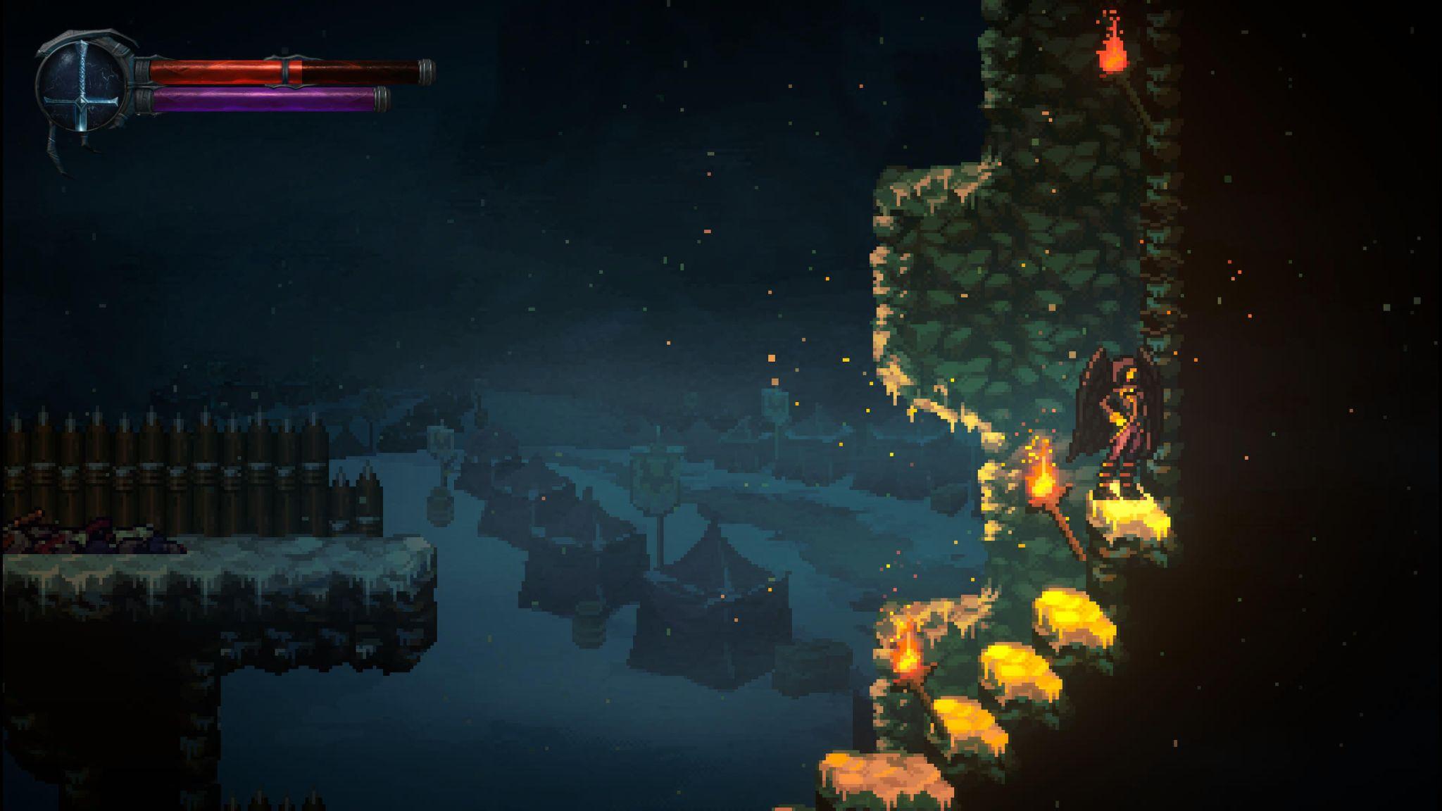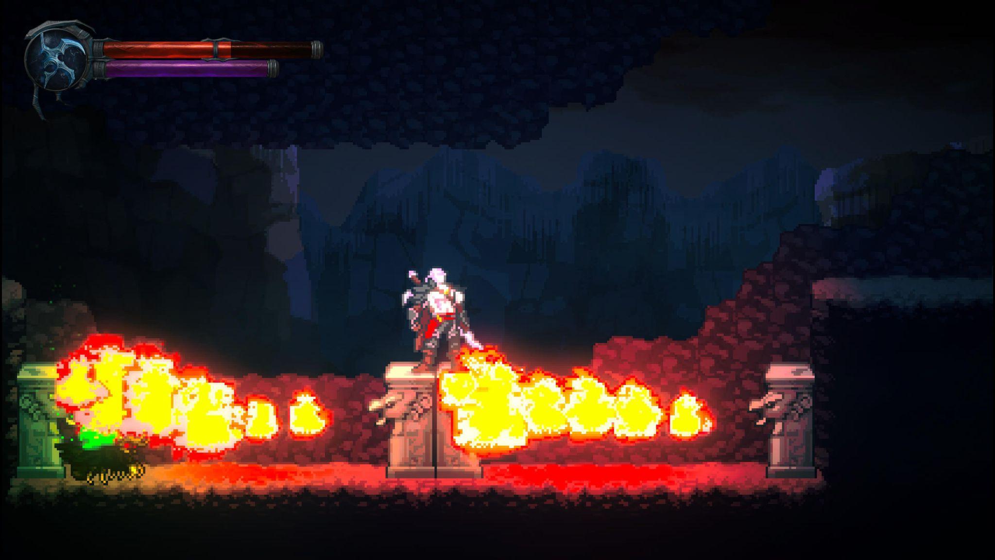 Ironiquement, les éléments du décor représentent parfois une menace plus importante que les ennemis eux-mêmes. On trouve de nombreux feux de camp et torches qui infligent des dégâts au joueur, mais pas aux ennemis. Il faut également éviter certains pièges de flammes ou des ponts qui s’effondrent après avoir marché dessus. J’aurais aimé pouvoir me servir des pièges pour éliminer les ennemis, mais ce n’est malheureusement pas possible.