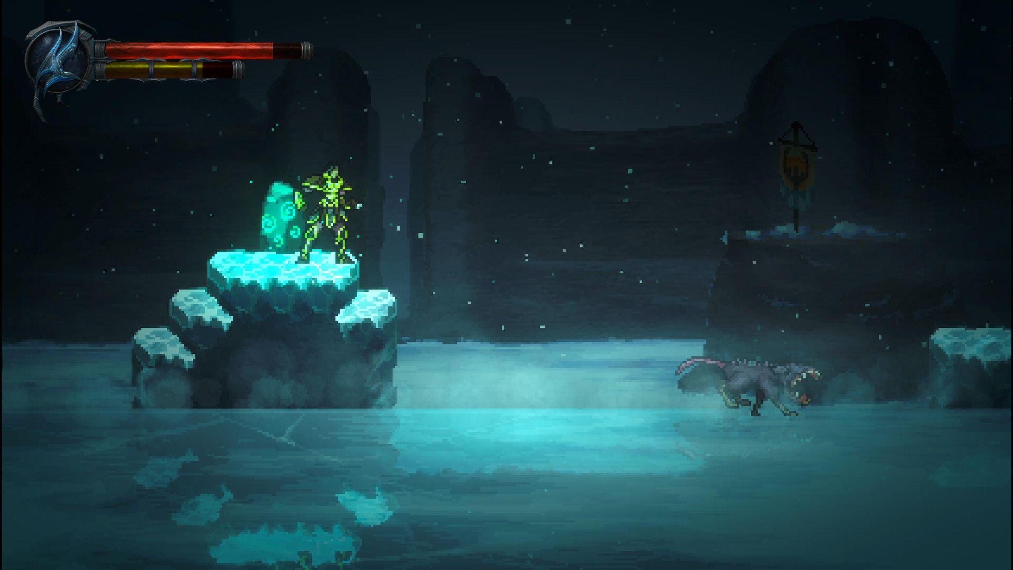 Dans certains cas, il suffit de sauter, de faire un dash ou simplement de s’accroupir pour éviter leurs attaques. Il est même possible de terminer presque tout le jeu sans réellement utiliser la mécanique de parade, à une exception près. Le jeu souffre aussi d’un manque de boss (on en compte seulement six ou sept). Chacun propose bien quelques mécaniques différentes, mais, dans l’ensemble, les combats restent simples. La stratégie consiste généralement à éviter les attaques, attendre une ouverture et frapper. Aucun boss ne m’a demandé plus d’une tentative pour être vaincu.