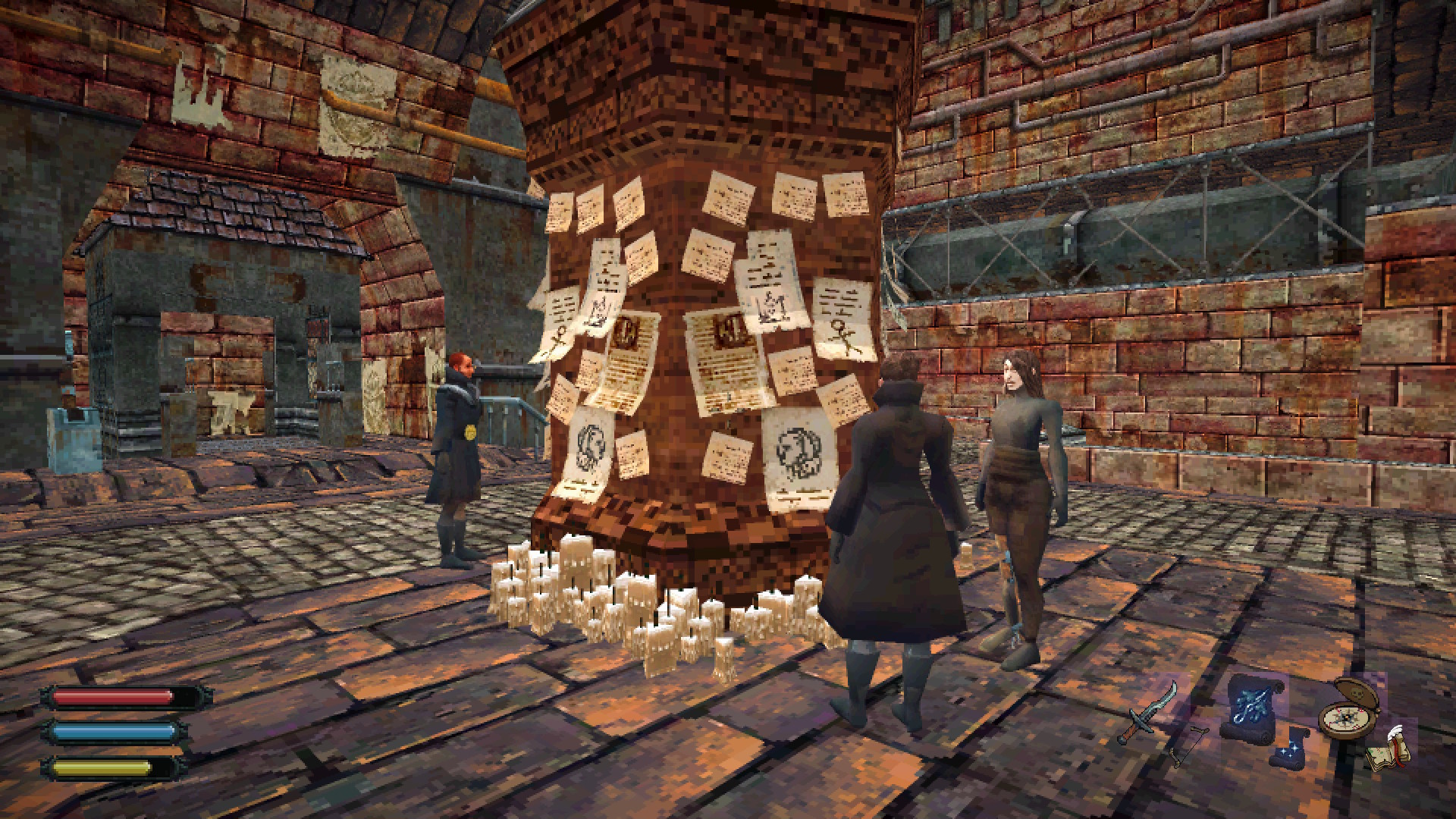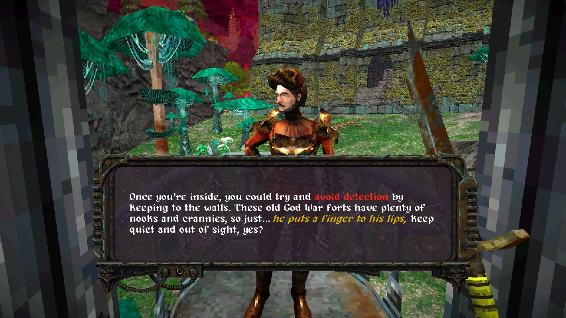 Toutefois, là où l’aspect jeu de rôle prend tout son sens est dans les quêtes et les interactions avec les personnages. Je tiens à dire que les interactions avec les PNJ sont vraiment mémorables et que les quêtes sont toutes uniques et amusantes. Que ce soit enquêter sur un groupe de cultistes qui opèrent la nuit dans un lieu caché, en convainquant une mère de vendre sa fille comateuse à une entreprise de fabrication de fioles de vision ou en administrant un poison à un prince qui regrette que son père ait choisi la souffrance en échange de sa liberté, les quêtes sont toutes intéressantes. Elles sont remplies de dilemmes éthiques dont les conséquences affecteront directement vos liens avec les personnages et les différentes factions. Vous serez amené à visiter des lieux fascinants et vous n’aurez pas fait deux pas que de nouvelles opportunités d’aventure se présenteront à vous. L’écriture est tout simplement sans failles et, bien que les modèles des personnages soient très simplistes, les dialogues vous permettront de bien comprendre l’attitude de chaque personnage et de faire ressortir leurs traits de caractère. Je me souviendrai longtemps du garde nonchalant qui me refusait le passage vers le Clockwork Kingdom.