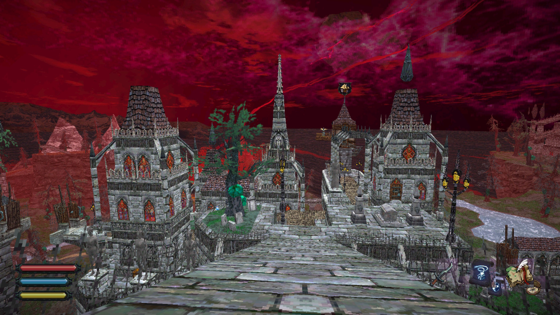 En visionnant les bandes-annonces du jeu, vous pourrez bien voir le style visuel que le développeur a choisi, mais c’est en explorant que vous pourrez vraiment l’apprécier. Comme je l’ai mentionné précédemment, je me suis souvent arrêté pour prendre des photos en me disant « Wow, qu’est-ce que c’est beau! ». La vision artistique est surprenante et c’est un titre qui montre bien que les graphismes sont souvent bien secondaires. Dread Delusion est la preuve qu’il n’est pas nécessaire d’avoir des graphismes à la fine pointe de la technologie pour être amusant. Les images ci-dessous témoignent de la beauté du paysage et de la complexité de l’architecture. Alors je vous laisse savourer quelques images, puisque, comme on le dit souvent, une image vaut mille mots!