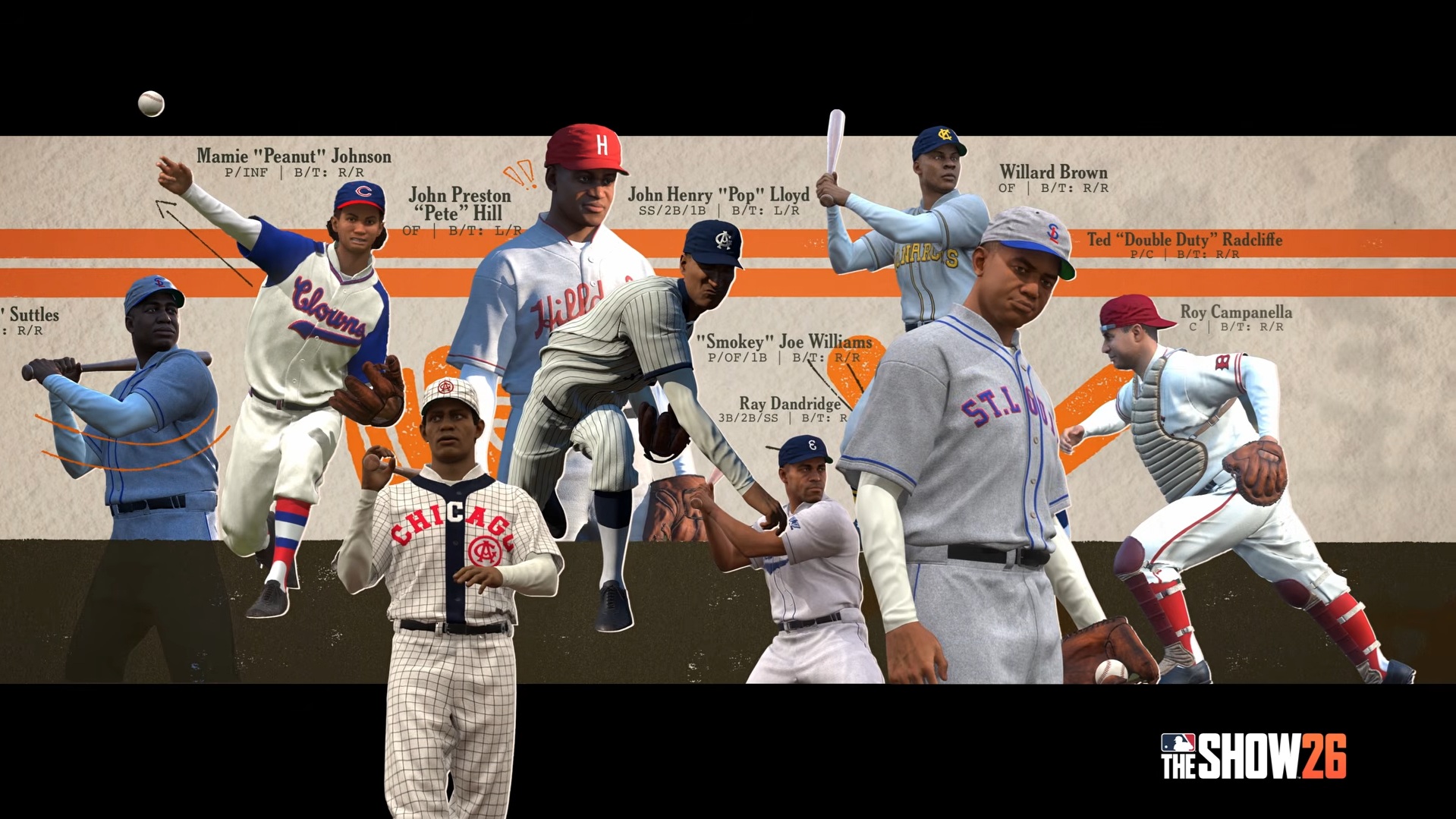 Intégrée depuis The Show 23, la Negro League est de retour pour une quatrième saison. Dans cette édition, nous allons jouer l’histoire du légendaire receveur Roy Campanella, de la lanceuse Mamie “Peanut” Johnson, de l’arrêt-court John Henry “Pop” Lloyd et du gros frappeur George “Mule” Suttles. Vous devrez relever des défis avec chacun de ces joueurs et, avant chaque défi, vous aurez droit à un court documentaire sur le joueur. Bob Kendrick, président du Negro Leagues Baseball Museum, vous servira encore de guide pour cette visite historique et vous révélera des détails fascinants sur ces icônes du sport.
