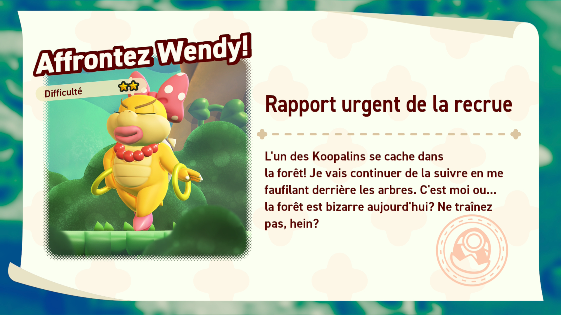 L’expansion vous propose une autre nouveauté en vous offrant de nouveaux boss à combattre. Les Kooplins, ont volé les fleurs de Bellabel et vous devez les récupérer! Vous aurez donc sept nouveaux boss à anéantir! Vous retrouverez ceux-ci aux tentes de la brigade qui sont cachées un peu partout dans la vaste carte du monde de Super Mario Bros Wonder. Vous devez alors avoir joué jusqu’à la fin pour avoir accès à tout les combats. Pour avoir accès au premier, vous devez avoir fini les quatre premiers niveaux du jeu et briser les rochés qui bloquaient l’accès des tableaux suivant. Pour ce qui est des autres, vous devez progresser dans l’histoire pour y avoir accès. Les boss ont des pouvoirs spéciaux que Bowser leur a transmis. Par exemple, vous combattrez Wendy sous sa forme de poisson géant passant d’un portail à un autre et en vous envoyant des vagues poissons. Vous devez l’affronter en sautant sur sa tête à trois reprises, comme d’habitude. Cependant, d’autres combats seront entièrement différents, mais je vous réserve la surprise. Les combats de boss sont très intéressants et se différencient les uns des autres, mais j’aurais aimé en avoir encore plus, puisque le jeu de base en avait tant besoin!