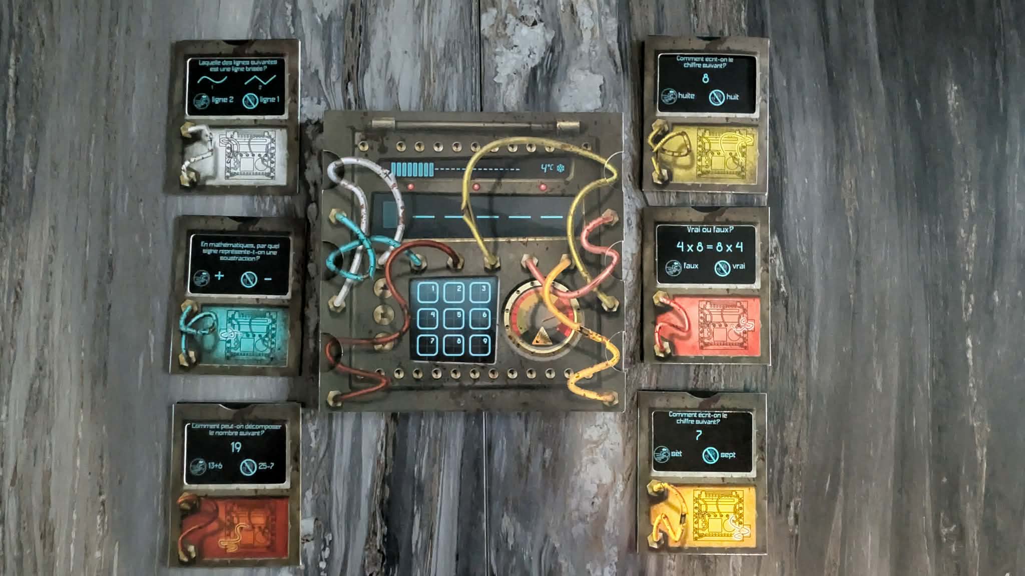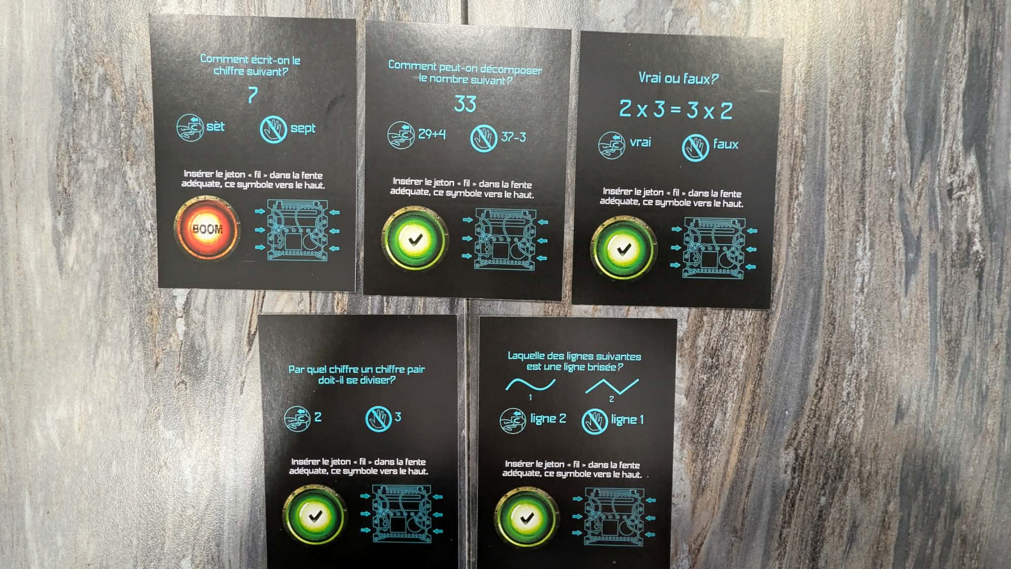 Une fois la mise en place réalisée, l’enfant peut ensuite être autonome et gérer le jeu par lui-même jusqu’à la fin de la partie. Il lui suffit de lire la question, de choisir l’une des deux réponses proposées et de réaliser l’action qui s’y rattache, soit retirer le fil en question, soit le laisser en place. Selon la couleur des voyants lumineux qui apparaissent lorsqu’un fil est retiré, ou lors de la vérification finale en ouvrant le coffre-fort, l’enfant peut lui-même savoir s’il a échoué ou réussi sa mission. Être capable de jouer seul et de savoir par lui-même s’il s’agit d’une victoire ou d’une défaite est d’ailleurs ce que mon fils de 6 ans a le plus aimé.