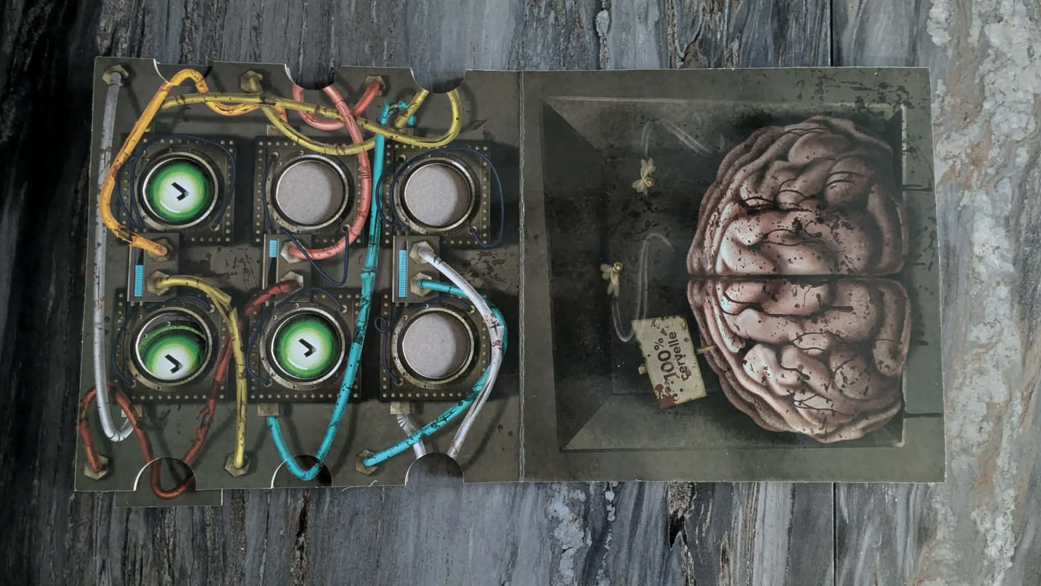 Cependant, avoir réussi à répondre aux six questions sans avoir retiré de mauvais fils n’est pas nécessairement signe de réussite: il reste à ouvrir le coffre-fort pour vérifier si notre repas est encore intact. Pour ce faire, l’enfant n’a qu’à ouvrir le carton, qui est replié sur lui-même, et vérifier la couleur des lumières restantes dans l’espace attitré à cet effet. S’il ne reste que des lumières vertes, c’est réussi. Cependant, si une lumière rouge est restée glissée à cet endroit, c’est signe que la bombe a explosé et que la cervelle est maintenant en état de bouillie.