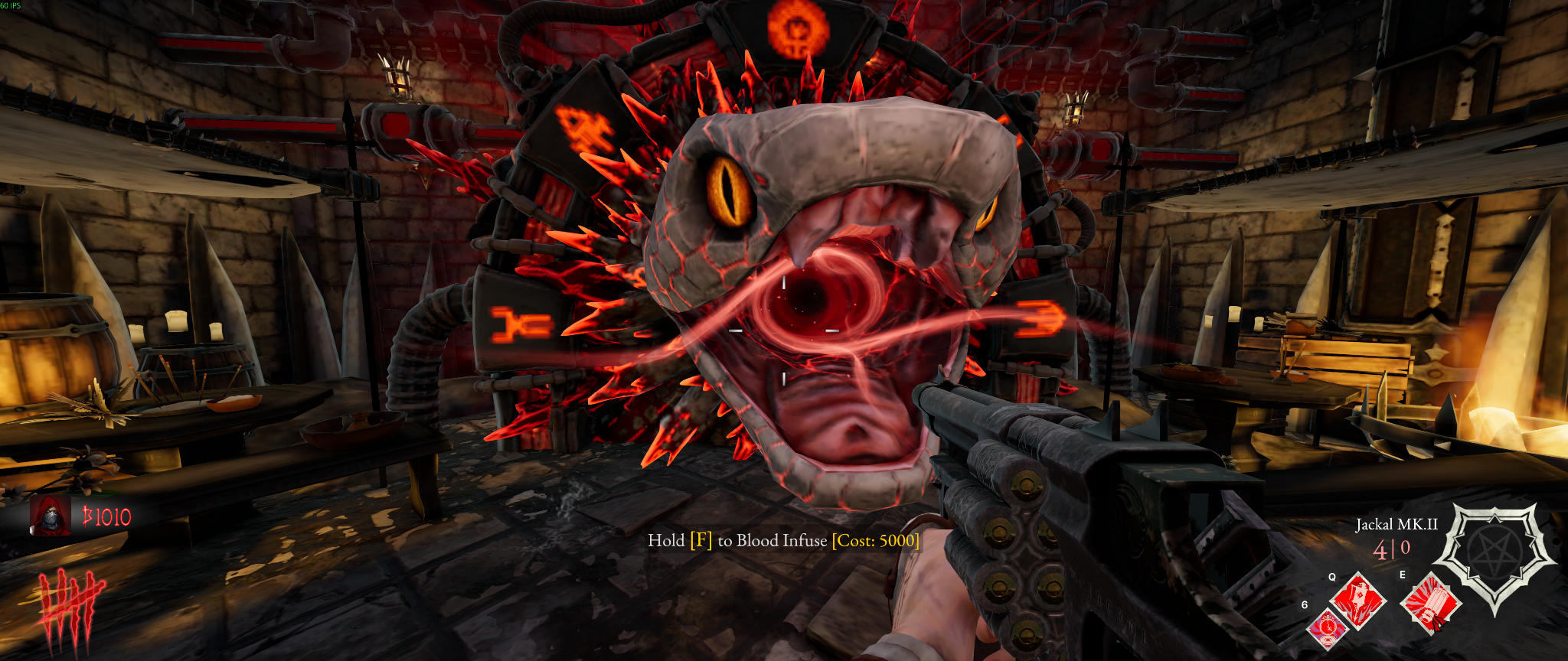 La progression d’une partie repose principalement sur un système de points qui est représenté par de la monnaie. Les points sont obtenus de plusieurs manières, soit en tuant des monstres ou en réparant des barricades. Ces points peuvent ensuite être dépensés pour acheter des armes, améliorer son équipement ou déverrouiller de nouvelles zones. Ces mécaniques rappellent fortement certains modes zombies de la franchise Call of Duty. La différence principale réside dans l’univers dark fantasy du jeu, ainsi que la différence de graphisme, mais il mise sur la violence visuelle et les effets sanglants. Il y a possibilité d’avoir jusqu’à trois capacités utilisables et qui se régénèrent avec le temps en tuant des démons. Il peut s’agir, par exemple, d’une grenade, d’un pouvoir de ralentissement ou d’un « stimpack » qui permet de récupérer des points de vie rapidement. Il sera assurément possible d’avoir d’autres capacités lors de la sortie officielle, mais, pour le moment, c’est assez restreint.