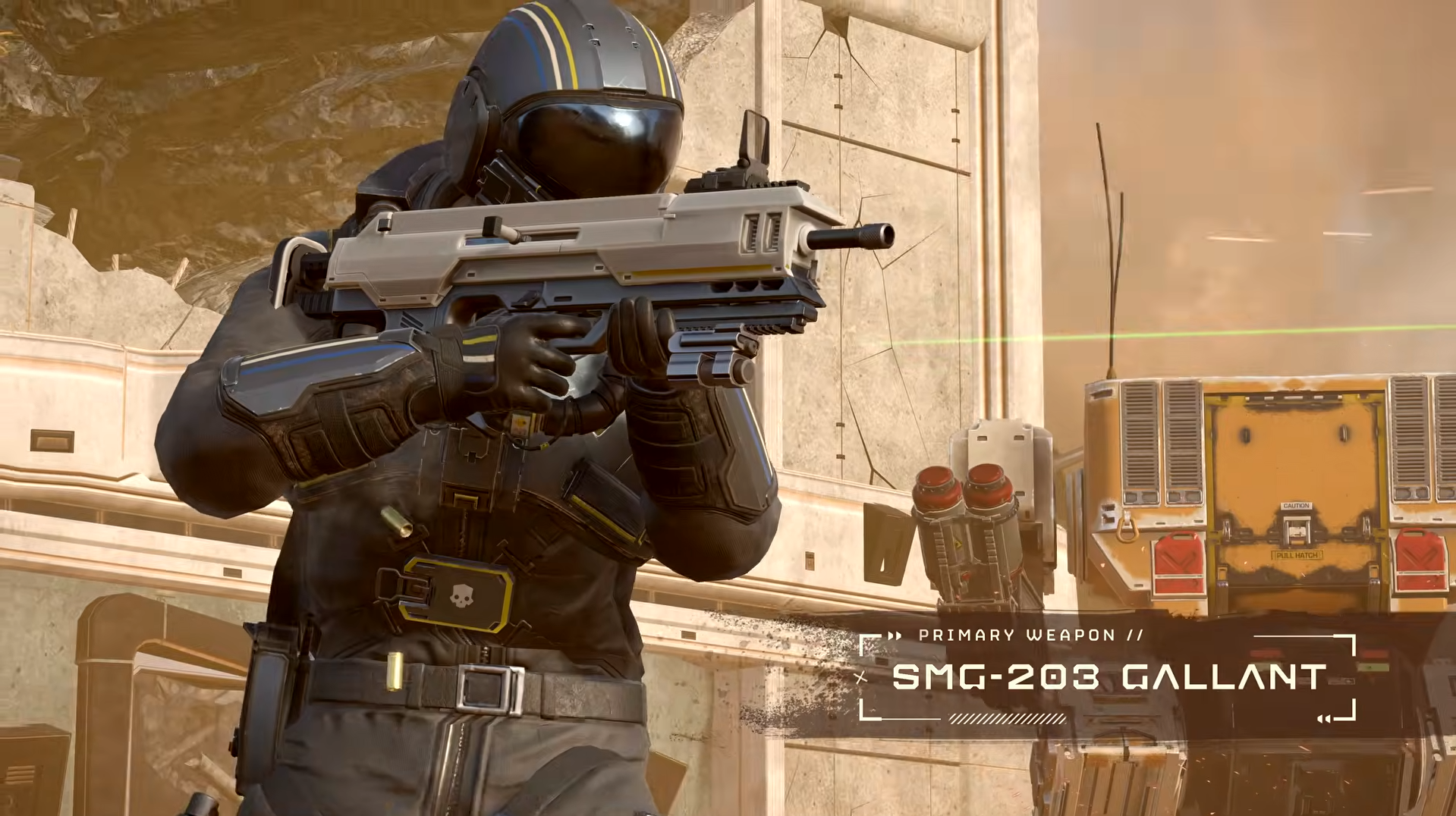 · SMG‑203 Gallant – Pistolet‑mitrailleur à cadence de tir élevée offrant une pénétration accrue, sacrifiant la capacité du chargeur au profit de l’impact.