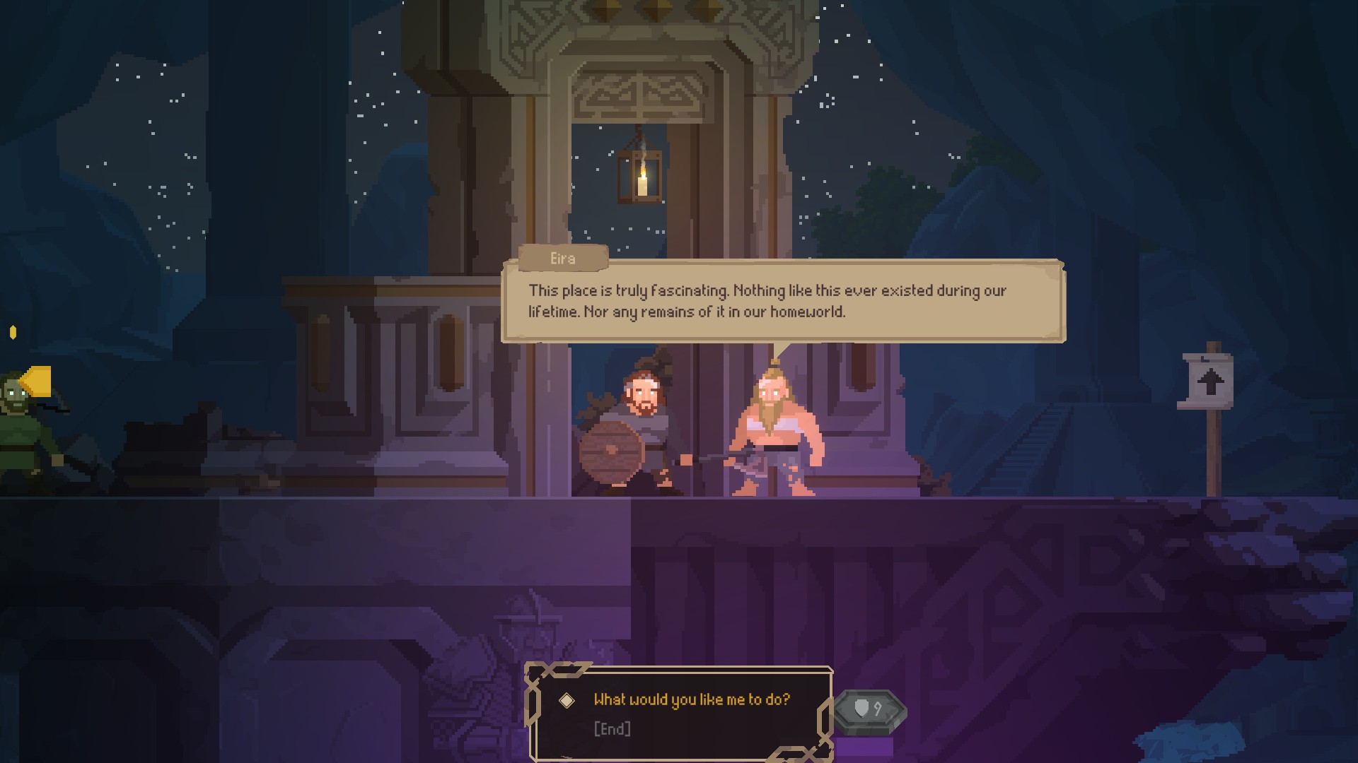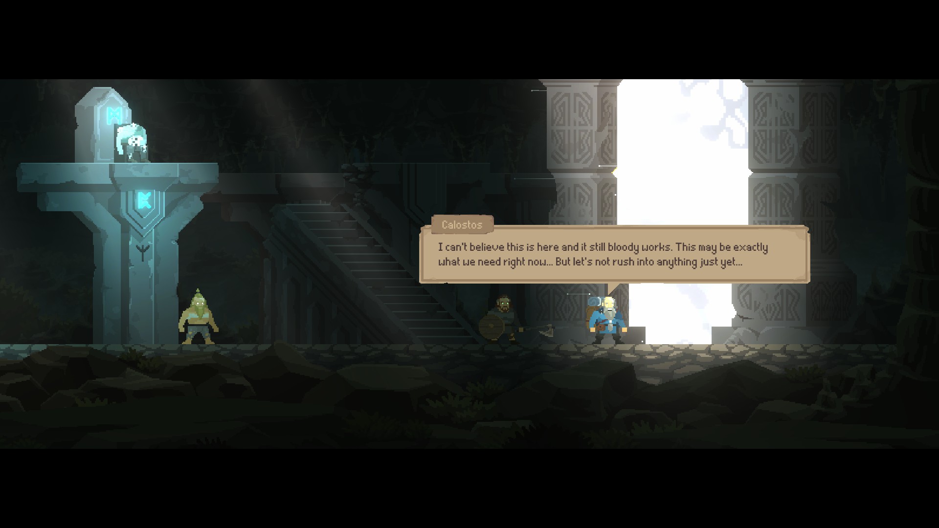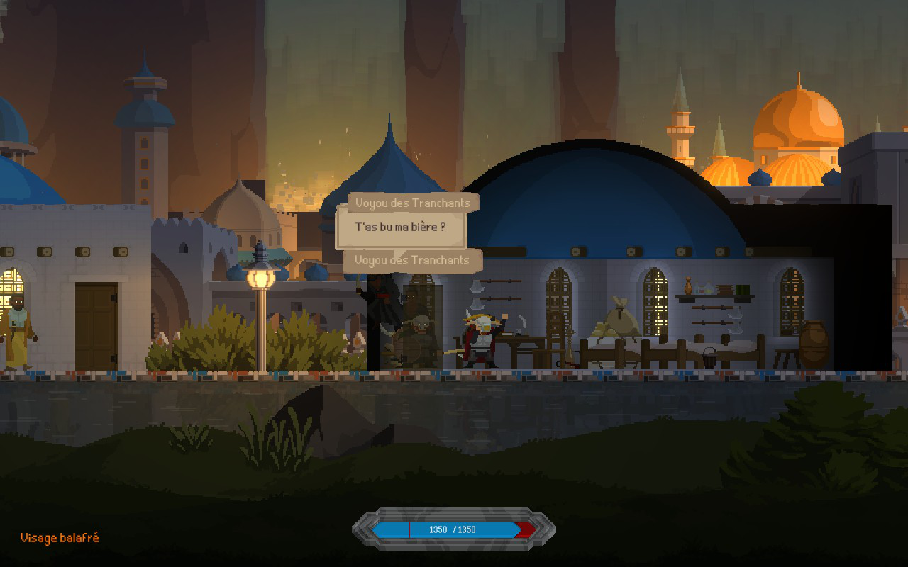Les zones à visiter sont de longs niveaux en 2D dans lesquels vous aurez à compléter des phases de plates-formes, résoudre des puzzles et combattre divers ennemis. Le style pixel perfect donne un rendu intéressant aux niveaux et encourage le joueur à explorer. Les environnements sont variés et chaque lieu est unique autant en matière de contenu que de design. J’ai adoré explorer chaque recoin des différents environnements et partir à la recherche de compagnons et de trésors. L’exploration est le point fort de Regions of Ruin: Runegate, alors je vous suggère de ne pas seulement vous en tenir à la trame narrative, mais de bien prendre le temps de découvrir chaque lieu et de participer aux différentes quêtes secondaires qui vous seront proposées.
