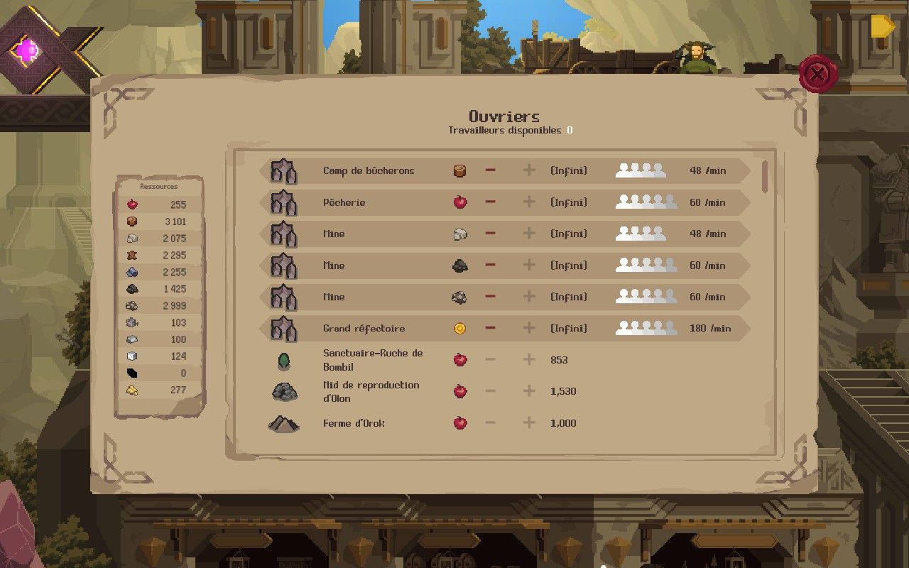 Mais ce qui fait l’essence du jeu est, bien sûr, la progression de votre campement et de votre population. Pour améliorer vos bâtiments et ouvrir vos possibilités, vous devrez récolter des matériaux en explorant ou en assignant des travailleurs à certains lieux. Les travailleurs rapportent un certain nombre de matériaux par minute et le type récolté varie selon l’endroit auquel vos travailleurs sont affectés. Certains lieux découverts peuvent être exploités selon un nombre prédéterminé de matériaux, tandis que votre mine personnelle ou votre scierie vous offre des ressources illimitées, mais doivent être améliorés pour pouvoir y assigner un plus grand nombre de travailleurs.