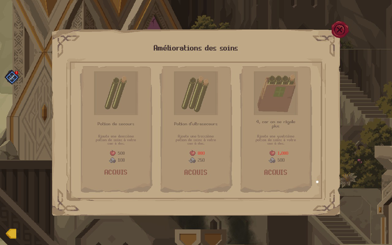 Regions of Ruin: Runegate est un jeu surprenant. Je dois dire que je ne m’attendais pas du tout à avoir autant de plaisir et je ne peux pas me plaindre. L’exploration est géniale, l’histoire est unique, les quêtes sont nombreuses et l’évolution de la ville est intéressante. J’y ai vécu des aventures inoubliables et j’ai trouvé la jouabilité très réussie. Je ne trouve pas beaucoup de points négatifs au jeu, sauf que les boss se font trop peu nombreux et que vous passerez un certain temps à lire des textes. Le design visuel est soigné, les décors sont variés, le système de compagnons est très cool (j’ai un faible pour Reginald la Slime, qui m’a accompagné pendant une bonne partie de mon aventure), l’équipement est abondant et les dialogues sont captivants. Vraiment, Regions of Ruin: Runegate est une réussite sur toute la ligne. Si vous aimez les nains, les jeux qui sortent de l’ordinaire et qui sont riches en contenu, Runegate est fait pour vous. Je lui donne l’excellente note de 9 sur 10!