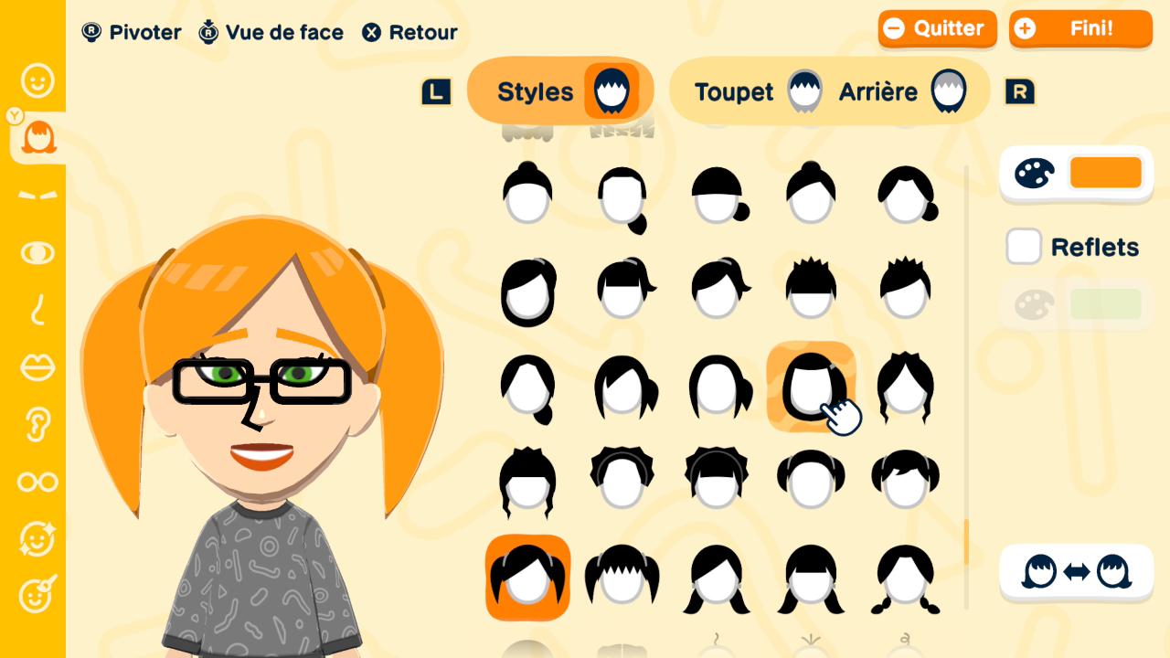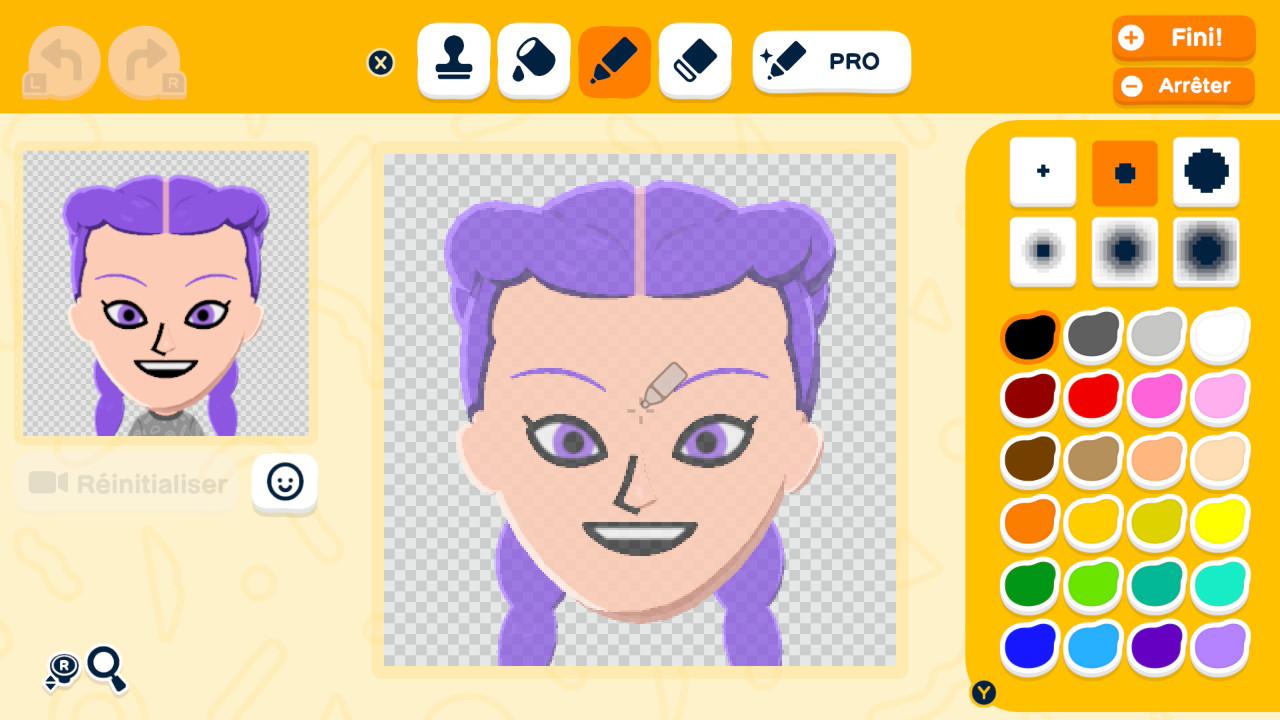 Je dois également vous parler un peu de l’atelier de création, auquel vous aurez accès lorsque vous aurez suffisamment de Miis et qui vous permet de concevoir vos propres objets. Les options sont plus restreintes au départ, mais la fontaine à vœux vous permettra éventuellement d’en obtenir davantage. Par contre, je vous déconseille d’utiliser la manette pour ce mode, car je trouve qu’elle manque de précision. Privilégiez plutôt l’écran tactile, idéalement avec un stylet. Pour ma part, je n’ai pas énormément utilisé ce mode, mais je suis convaincue qu’il plaira aux personnes plus artistiques que moi.