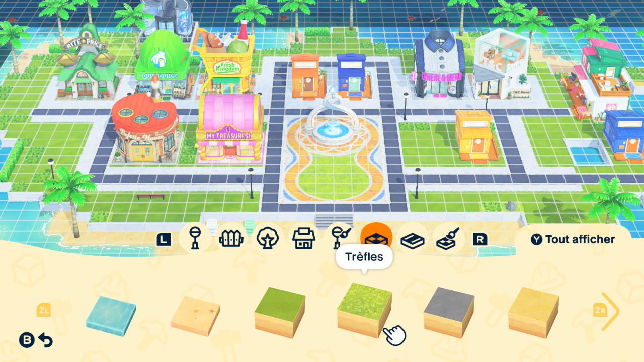 Les premiers bâtiments que vous aurez sur votre île, à l’exception de la maison de votre premier Mii, sont l’épicerie et la fontaine à vœux. Pour déverrouiller de nouveaux commerces, il vous faudra créer des Miis. En progressant, vous aurez accès à différents types de boutiques où vous pourrez retrouver des vêtements, de la décoration d’intérieur, de la décoration d’extérieur et plus encore. Actuellement, il est possible de déverrouiller treize bâtiments. Je vais vous laisser le plaisir de les découvrir par vous-même.