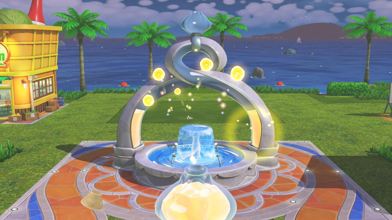 D’un autre côté, il me fait également penser à Animal Crossing puisque vous allez pouvoir personnaliser votre île à votre goût et la rendre conviviale pour les résidents. Par contre, la personnalisation de votre île est beaucoup moins poussée (je vous en parlerai plus en détail plus tard dans cette critique), mais il est visuellement similaire, mais avec une direction artistique plus aboutie. Ce degré de finition se constate notamment en regardant à l’horizon. C’est là où les détails de l’eau et d’une ville côtière créent un paysage particulièrement agréable à contempler. Une autre similitude est que le jeu fonctionne en temps réel. Cela dit, je n’ai pas remarqué d’impact sur la jouabilité, mis à part un commerce qui est ouvert à différents moments de la journée.